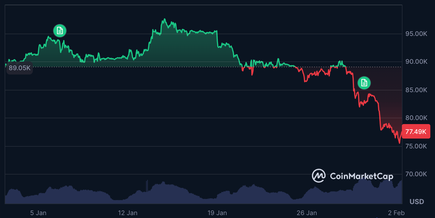 Bitcoin’s price, the bellwether for the market, has been under particular pressure. After peaking above $126,000 in October, it slid to test support near $75,000-$78,000, the lowest levels in almost a year. Ethereum and other large altcoins have experienced even steeper corrections; ETH, for example, briefly fell more than 18 per cent over a single weekend, contributing to the broader market contraction.